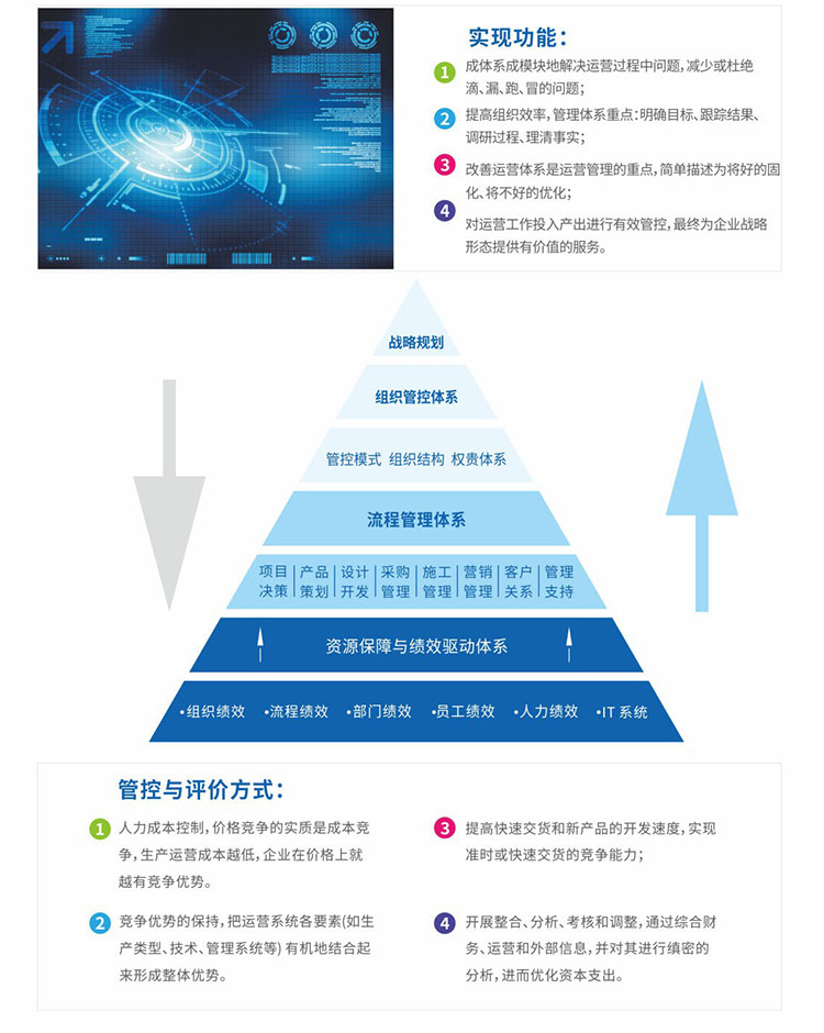 運(yùn)營管理戰(zhàn)略包含:減少企業(yè)現(xiàn)有利益損失、提高企業(yè)組織的經(jīng)營效率(組織效率、推、拖、拉)、有序改善企業(yè)運(yùn)營體系(不良習(xí)慣、制度流程)、提高投入產(chǎn)出比(經(jīng)營模式改良)。